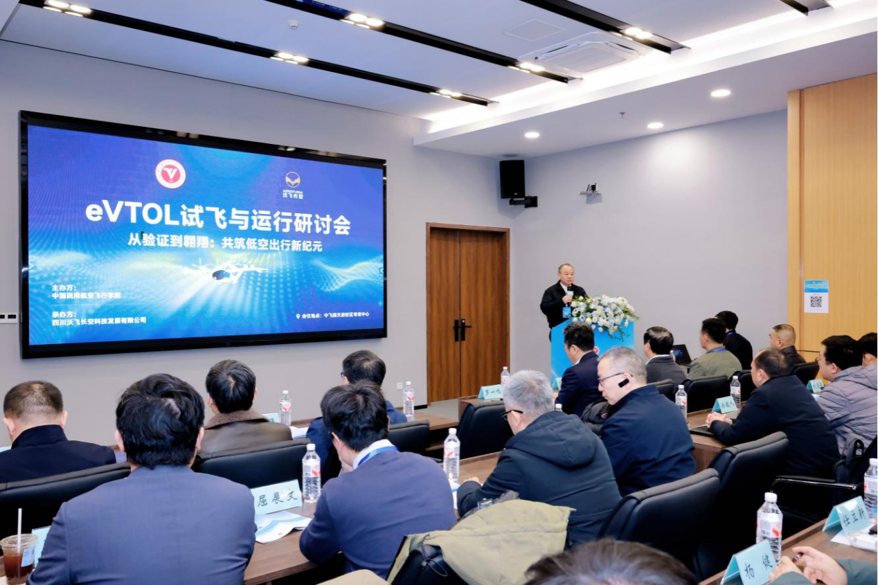 本网讯 牟忆豪 报道:近日,由学院主办、四川沃飞长空科技发展有限公司承办的eVTOL(电动垂直起降飞行器)试飞与运行研讨会在中飞院天府校区举办。来自全国民航各地区管理局、民航适航审定中心系统、中国民航科学技术研究院、中航工业集团相关研究所及试飞机构、中国商用飞机有限责任公司等各民航监管单位、政府管理部门、主机厂商、发展投资公司、模拟机制造厂商及运行支持单位的专家学者围绕eVTOL试飞安全与核心技术、运行体系与标准规范、飞行员培训体系建设等关键议题展开深度研讨,凝聚产业发展共识,为我国eVTOL产业高质量发展注入新动能。中飞院副院长方涛、四川沃飞长空科技发展有限公司CEO郭亮、中国民航适航审定中心主任罗一鸣出席并致辞。